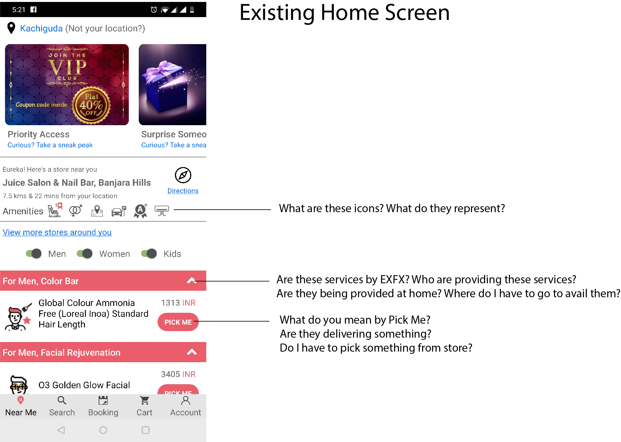 The users were finding it difficult to understand not only the features of the app but whether the services were being provided by EXFX itself or by a nearby salon.