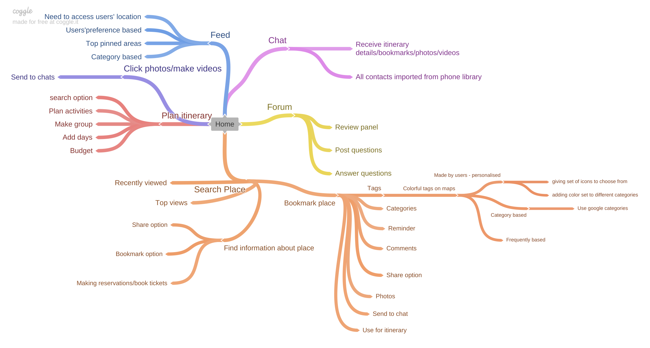 I did stakeholder interviews and brainstormed ideas using mind map to decide what are the requirements of a traveler and what solutions can we provide them.