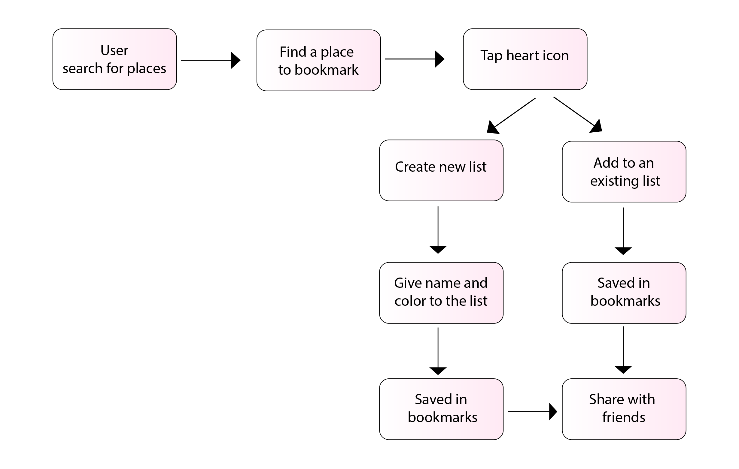 Follwing is the user flow created to analyse the user journey for creating bookmarks in the app